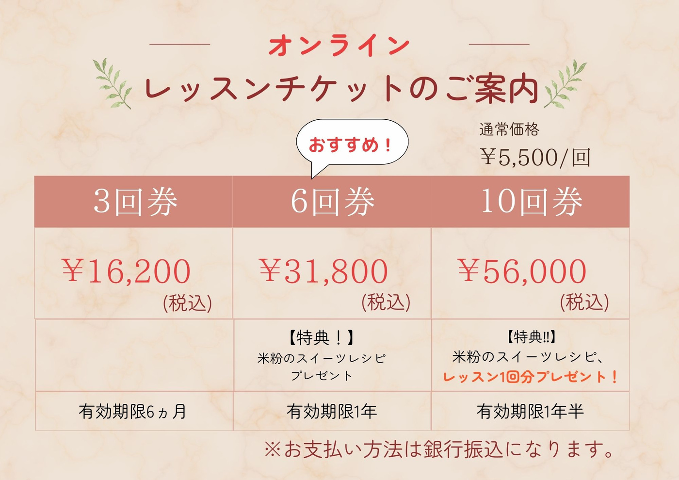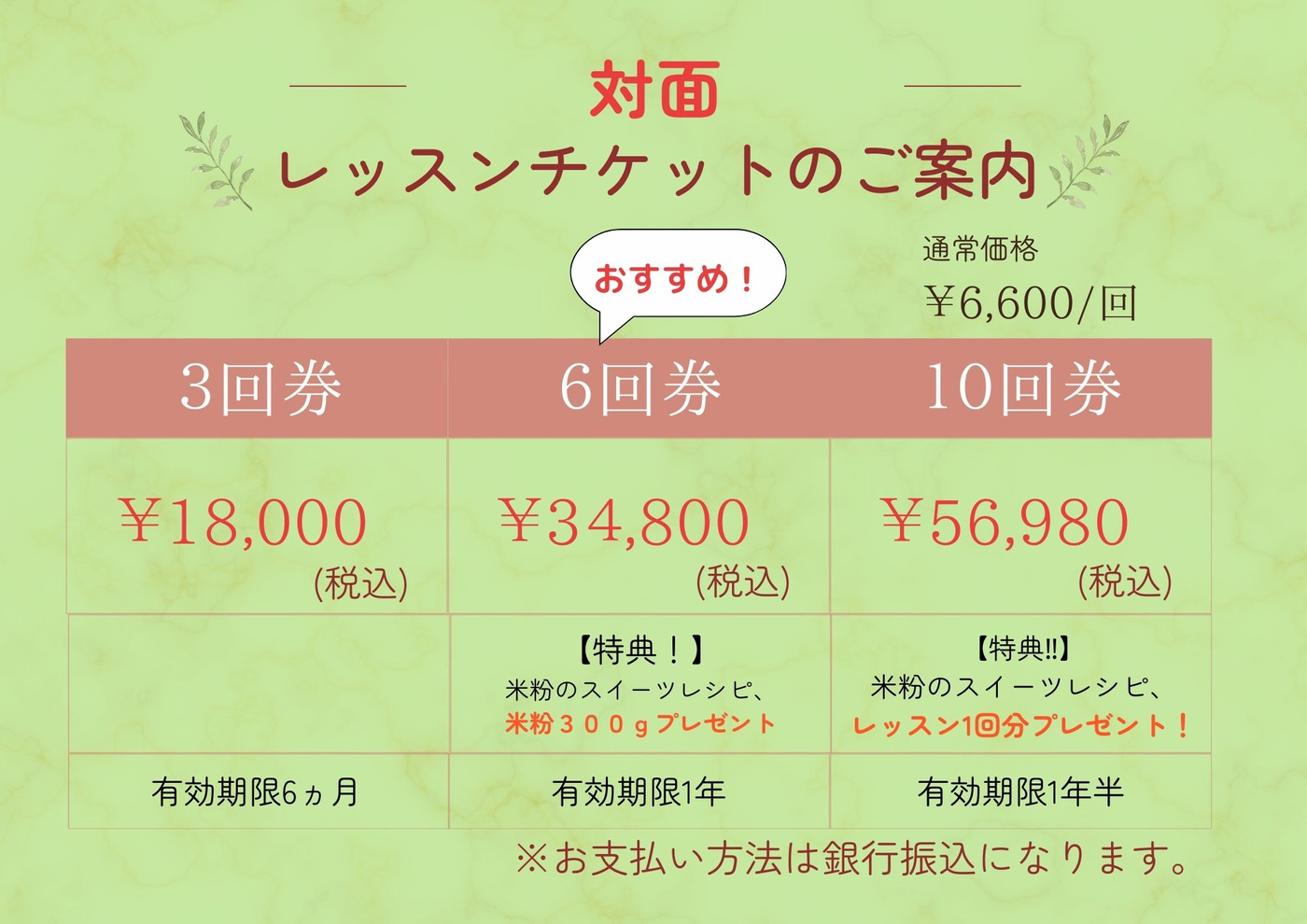 ※レッスンチケットは期間限定販売です。
